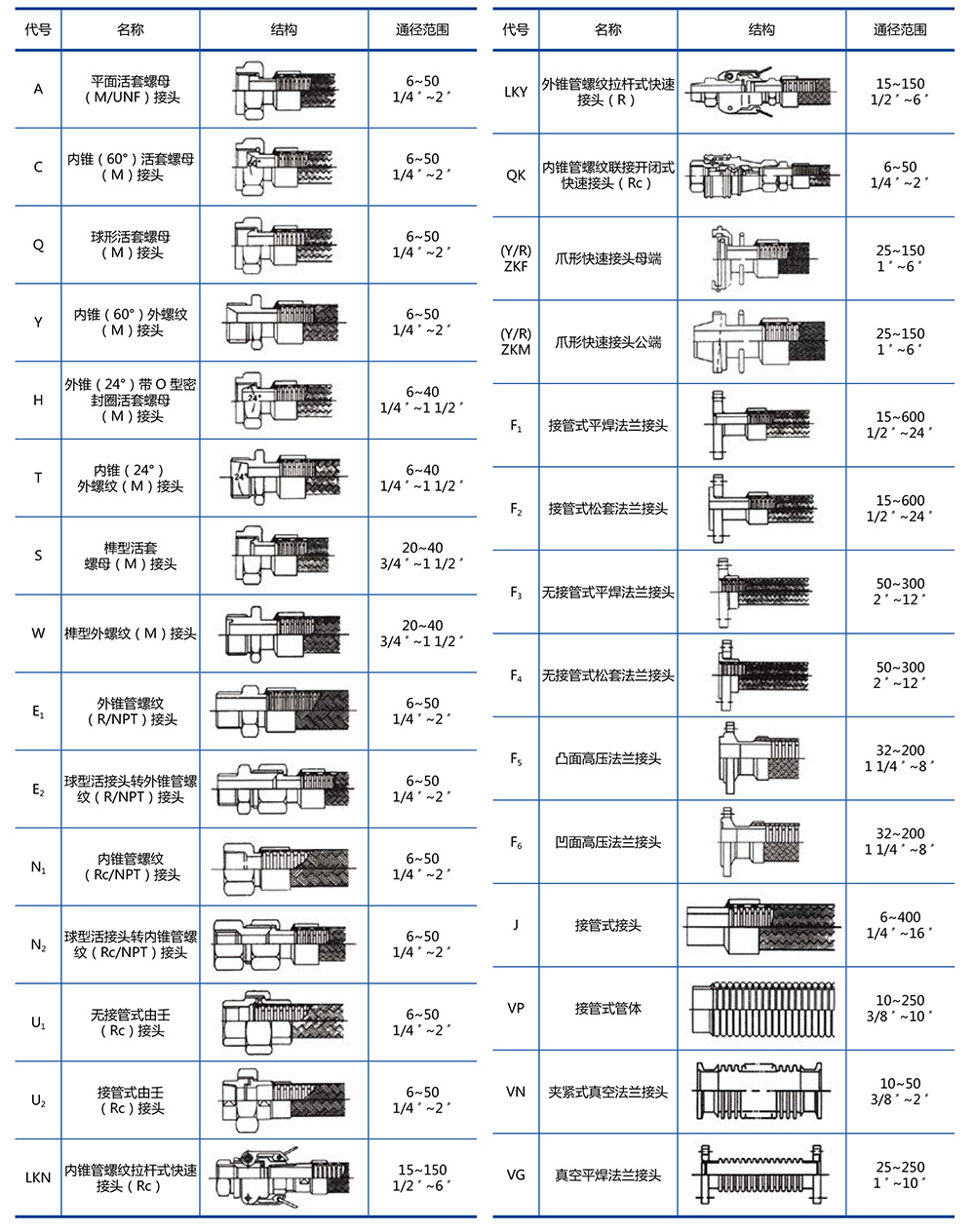 7、嚴禁機械損傷法蘭密封面。金屬軟管接頭形式一覽表: